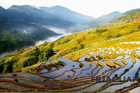 還有那美輪美奐的加榜梯田,有著“農耕文化博物館”之譽,堪稱“人間絕境”。加榜梯田位于從江縣西部的月亮山腹地,是中國梯田之一。獨具苗鄉特色的吊腳樓均勻散落于近萬畝的梯田之上,猶如銀河中閃爍的繁星。加之梯田緊靠加車河,雨水充沛,每天清晨,一層層云霧便從河邊緩緩升起,慢慢的將梯田連同吊腳樓一起籠罩,如此盛景,保證會讓你在陶醉之余生起一種身處幻境的錯覺。在以各種方式評選的中國 美梯田中,無論是10大、 9大,還是5大、4大,加榜梯田總會占據其中一席。