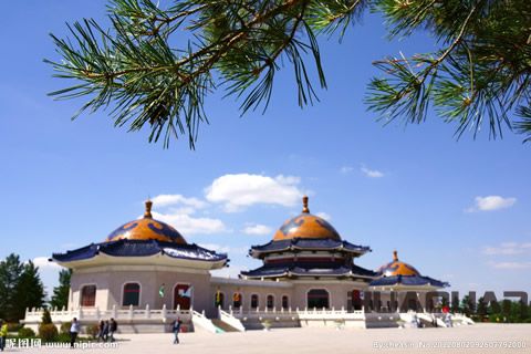 在伊金霍洛旗, 為知名的當(dāng)然就是“一代天驕”成吉思汗的陵墓了。“成陵”坐落于該旗境內(nèi)的甘德爾敖包上,總面枳約5萬平方米,主要分為圍墻、廣場、陵寢三個部分。而陵寢則由正殿、東殿、西殿和后殿組成,四殿相互連接,殿頂成圓形,房檐均為金黃色、藍(lán)色琉璃瓦鑲嵌砌筑,顯得格外輝煌壯觀。