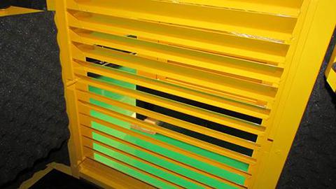普通靜音箱全部使用鐵質材料,將一定厚度的鐵皮加工成箱體結構,增加柵欄式通風結構。通風效果好,但不具備很高的靜音效果。箱體內沒有 吸音棉。吸音,隔音效果差。