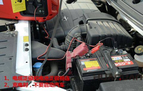 ● 充電電纜的正極與電池的正極相連,不要混淆正負(fù)極,否則會(huì)嚴(yán)重?fù)p壞發(fā)電機(jī)和電池。